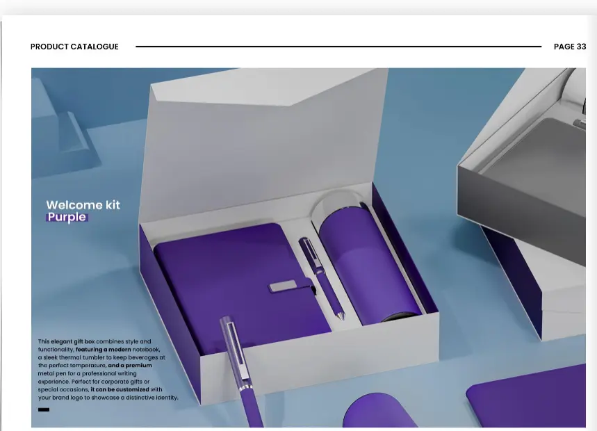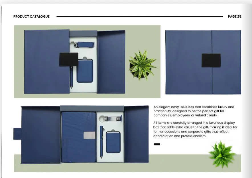 بوكسات أنيقة مصممة بعناية تجمع بين الفخامة والفائدة، مناسبة لكبار العملاء والإدارات التنفيذية، مع إمكانية تخصيص المحتوى والتغليف بالكامل.