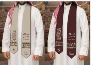 من أبرز هذه التوزيعات زي موحد وأوشحة يوم التأسيس واليوم الوطني فهي أوشحة قماشية مطرزة بخيوط ذهبية تحمل عبارات وطنية مثل “يوم بدينا” و”فوق هام السحب” مع زخارف مستوحاة من التراث السعودي مما يجعلها وسيلة تعليمية ممتعة للأطفال لتعزيز الهوية الوطنية.